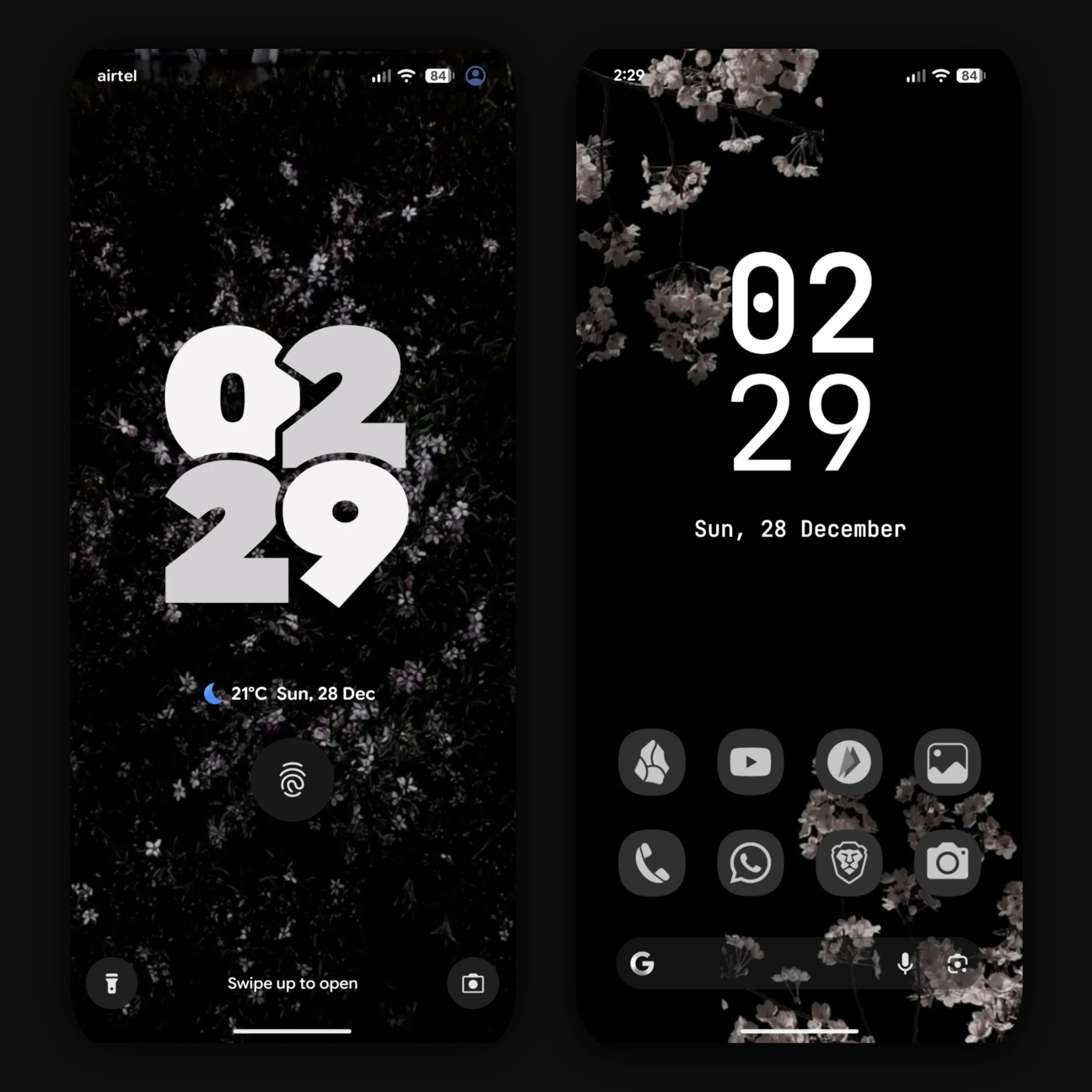 This is my Pixel 8 lock screen and home screen, both set to a monochrome theme that matches my Linux desktop using the MacTahoe GTK theme. The visual consistency across devices is both aesthetically pleasing and functionally calming.